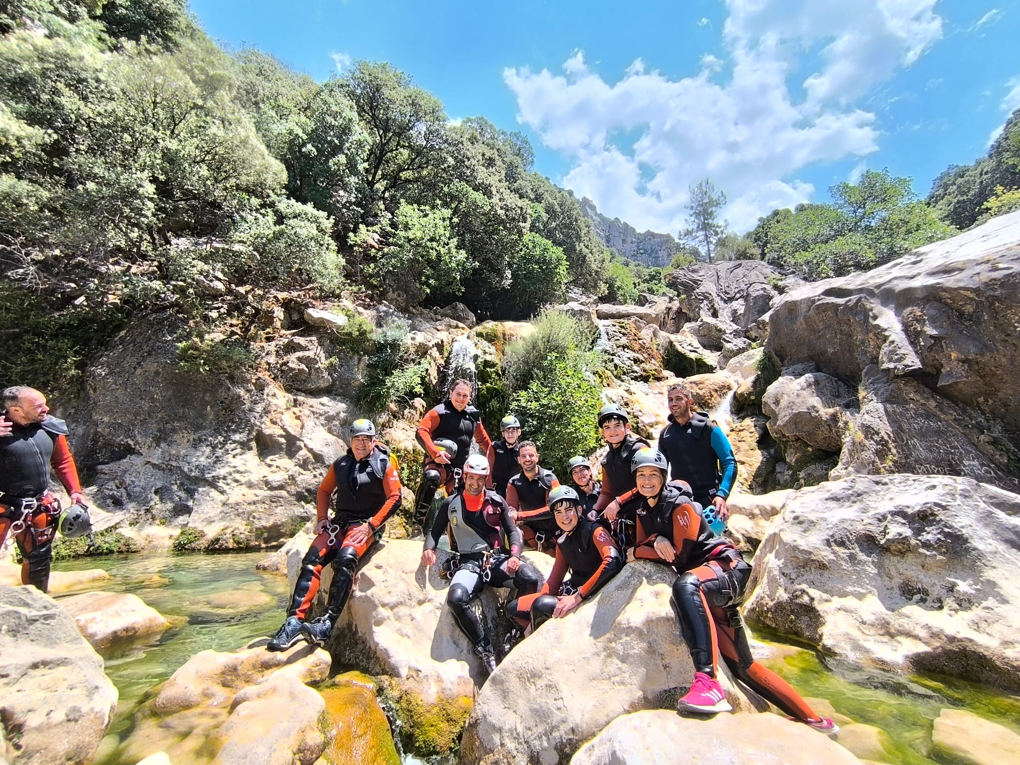 Es un descenso precioso por una garganta espectacular llena de cascadas, saltos, rapeles…